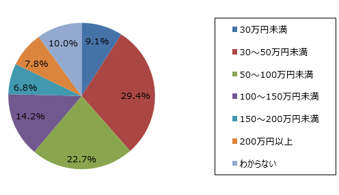 ■ ワーキングホリデーに興味がある人たちは、約6割が100万円未満で渡航できると予想